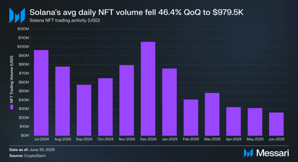2025年Q2は、取引量やNFT市場の短期的な落ち込みが目立った。